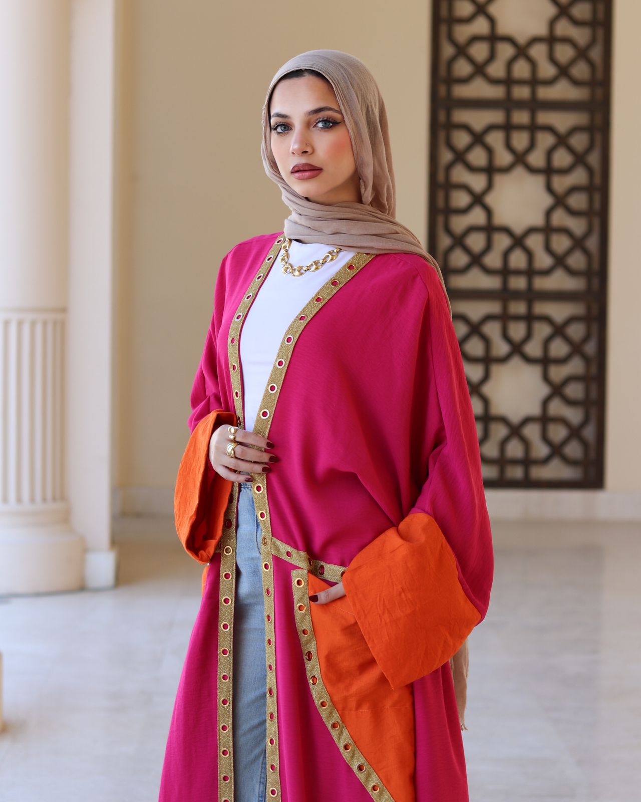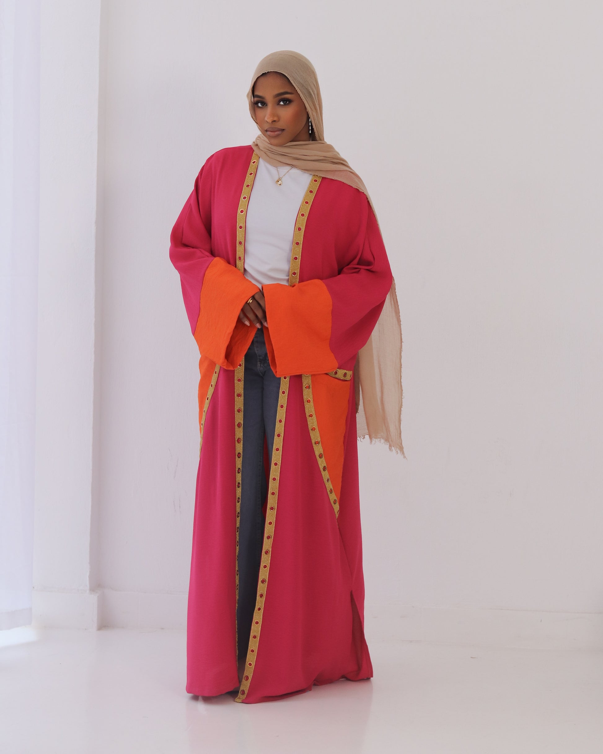 linen faushia with linen orange